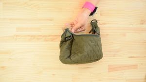 - Fold the bias towards the inside of the bag and stitch using the machine or a slip stitch.