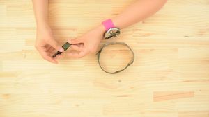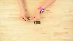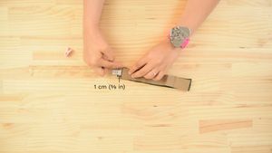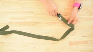 - Place the 1cm (⅜in) large small piece of webbing in the small snap hook, and fold the webbing in two.