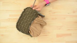 - Place the lining on the reverse side of the bag face and stitch all around 5 mm (⅛ in) from the edge.