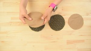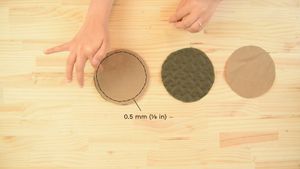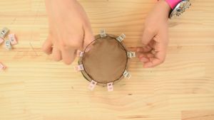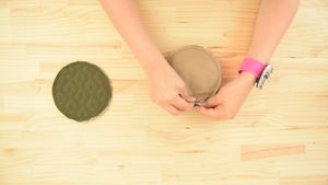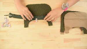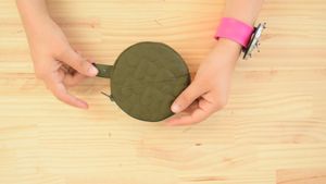 - Place the 21cm (8 ¼ in) small zipper between the perimeter of the circular bag and its lining right sides together well in the middle.