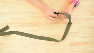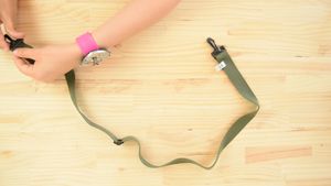 - Take two pieces of 10cm (4 in) long and 3.5cm (1 ¼ in) large webbing and thread them through one hook each.
